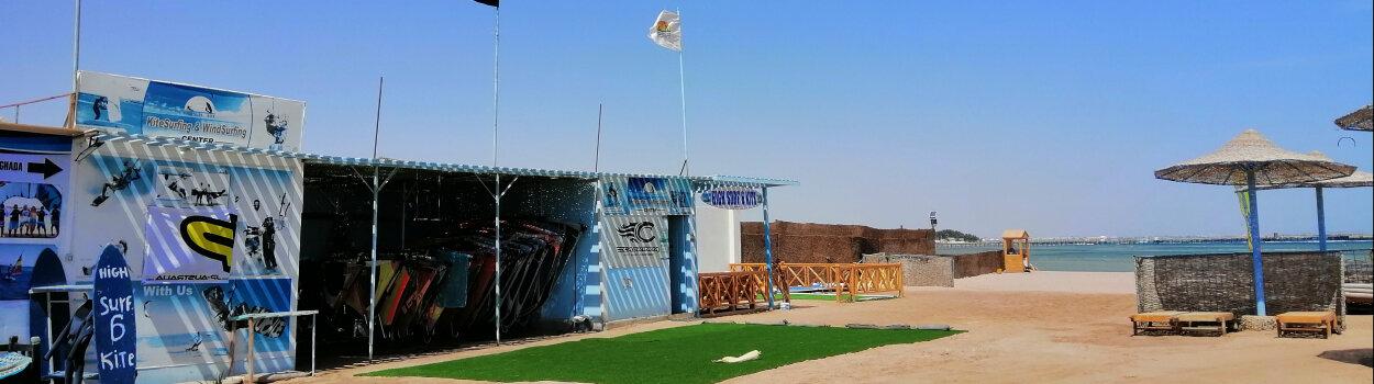 High Surf & Kite School is one of the best kitesurfing and windsurfing locations in Hurghada. Our spot is located directly on the beach of the Long Beach Resort Hotel, a few meters from the sea. It does not matter if you are a beginner or an advanced rider – our shallow and flat water lagoon guarantees the best conditions for practicing your sport. The turquoise water, sandy, long beach of the Long Beach hotel, combined with the constant winds, make our spot the perfect place for learning and training kitesurfing and windsurfing.